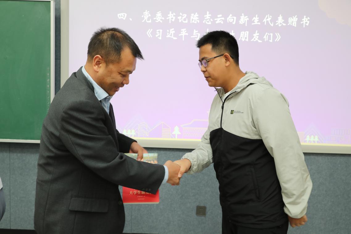 期间,陈志云向新生代表赠书《习近平与老员工朋友们》,期待首届学子通过努力实现自我成长,成为栋梁人才。