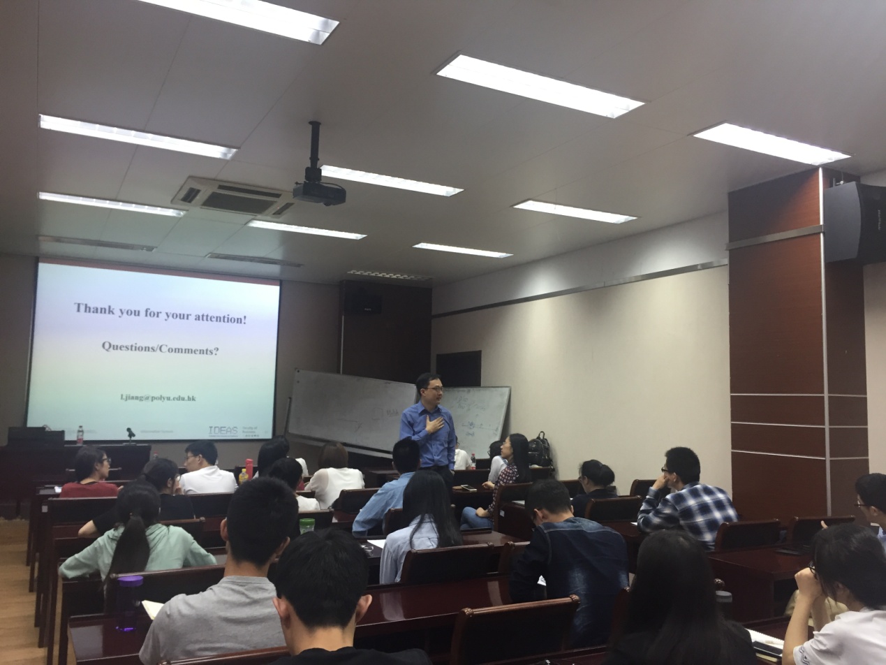 2017年5月18日,香港理工大学姜力教授受邀访问公司,与公司师生开展学术交流,并进行了题为“Competitor Cooperation in Sourcing”的学术报告。报告由公司沈厚才教授主持,公司众多师生到场聆听及交流讨论。