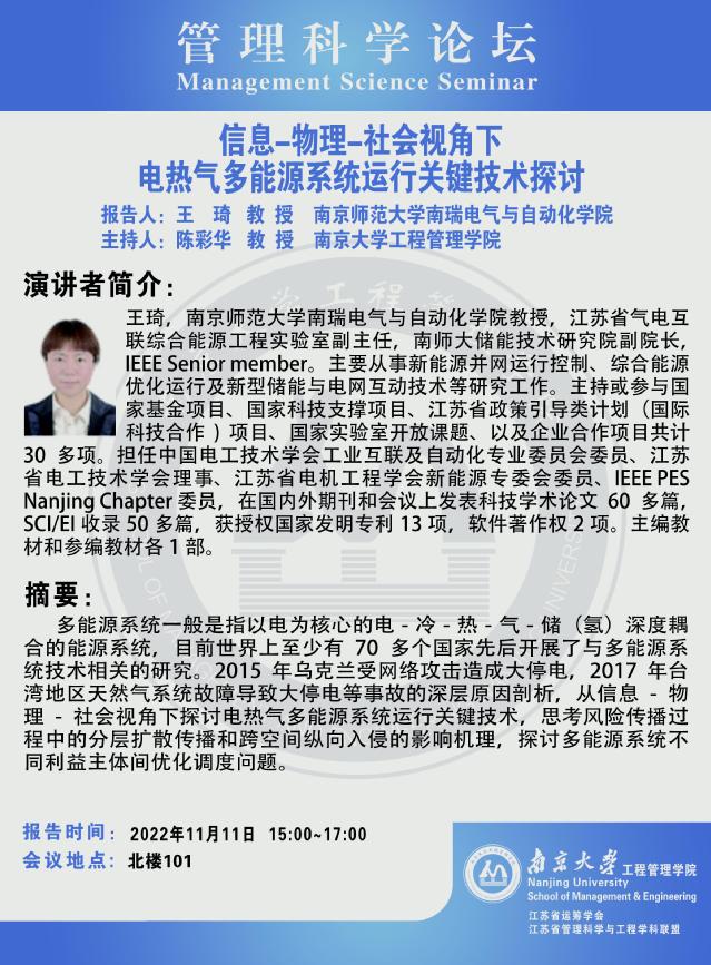 管理科学论坛:信息-物理-社会视角下电热气多能源系统运行关键技术探讨