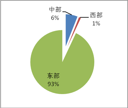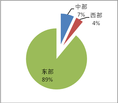 为了更好地释betway88西汉姆联毕业生的去向,我们对毕业生流向作了统计分析。通过归集整理2013届本科生和硕士生所在地数据,并且按照国家东、中、西部地区进行划分,得到以下图表: