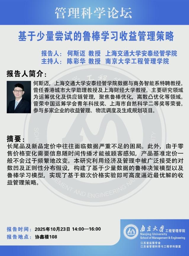 管理科学论坛:基于少量尝试的鲁棒学习收益管理策略