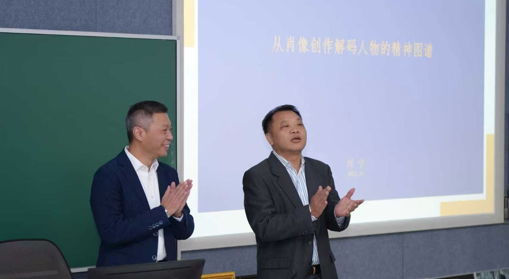 十二点半,午餐分享会正式拉开帷幕。工程管理公司党委书记陈志云主持开场,并介绍了刘宁老师以“从肖像创作解码人物的精神图谱”为主题的分享内容。