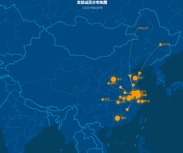 除了高频率的播报,为了解支部党员目前的健康状况,党支部副书记柴昭统计了支部党员的所在地以及党员自身与家庭成员的健康情况,并结合统计情况,绘制了支部党员所在地分布图,增强了可视性。位于湖北孝感的许诺同学,还通过手机报分享了自己受到社区帮助的情况与自己的日常生活。