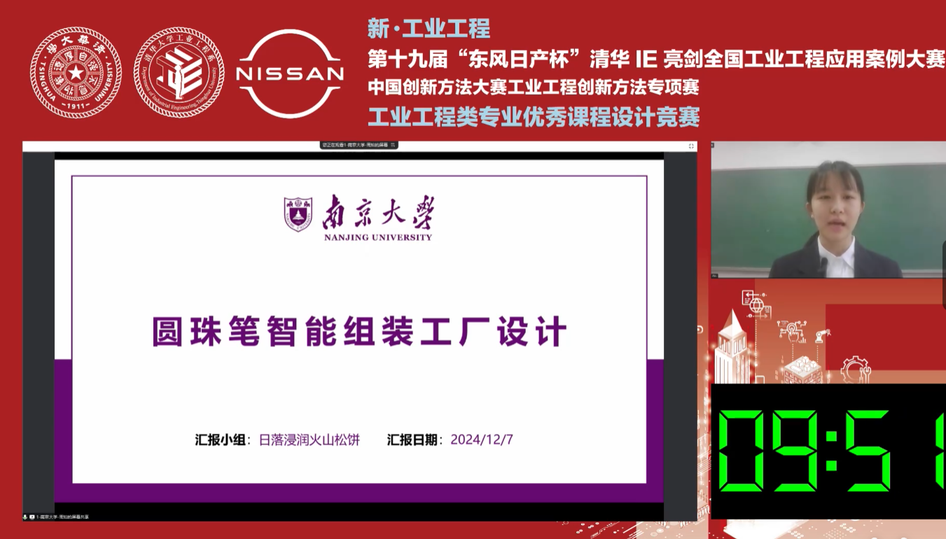 2024年12月7日,在第十九届“东风日产杯”清华IE亮剑全国工业工程应用案例大赛“全国工业工程类专业优秀课程设计展示”赛道的决赛中,公司学子喜获佳绩。由胡骞、陈国华、徐薇、刘帆等老师指导的5支队伍入围总决赛,共获得一等奖2项和二等奖3项。