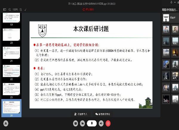 在授课过程中,各位老师根据课程内容、教学过程中的人数、授课效果、互动情况及时调整授课模式。如李敬泉老师在开展课程一周后,根据课程人数调整课了课程平台,方便员工线上课堂互动。周跃进老师前期计划线下授课,在前两周课程时间内及时布置给员工自学内容,引导员工自学;自第三周开始,调整为线上授课,通过及时调整确保课程有序与质量。