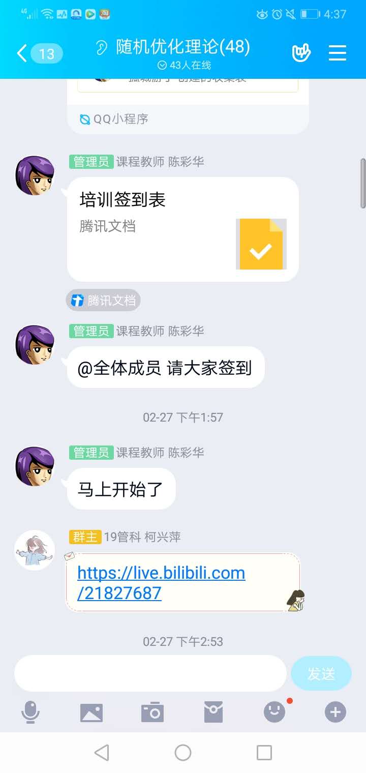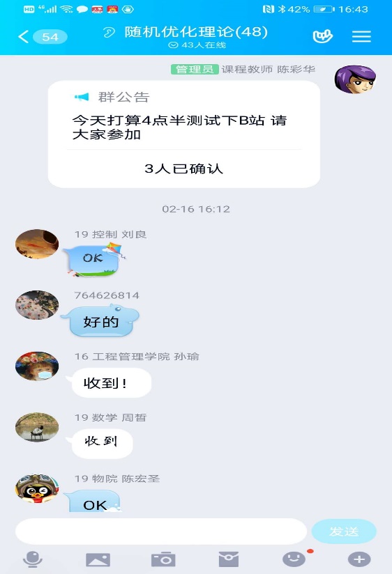 为顺利开展线上教学,各位老师对授课方式及平台进行了研究与试用。任课老师建立课程联系群,部分老师通过前期试课以保障正式开课的授课质量。经过研究与试用,授课教师结合需求及课程要求等选择了Zoom、企业微信、腾讯会议等平台开展了线上授课,并辅以教学立方、微信群等进行课程管理。