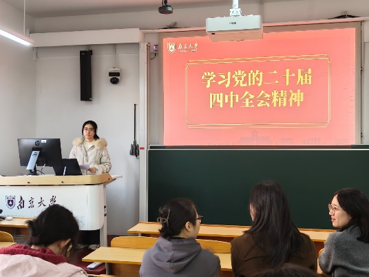 参观结束后,同志们回到浦口校区1—303A展开了王荷波纪念馆参观心得交流及党的二十届四中全会精神学习的主题会议,本次讨论由2025级硕士生第二党支部书记杨兴埕主持。