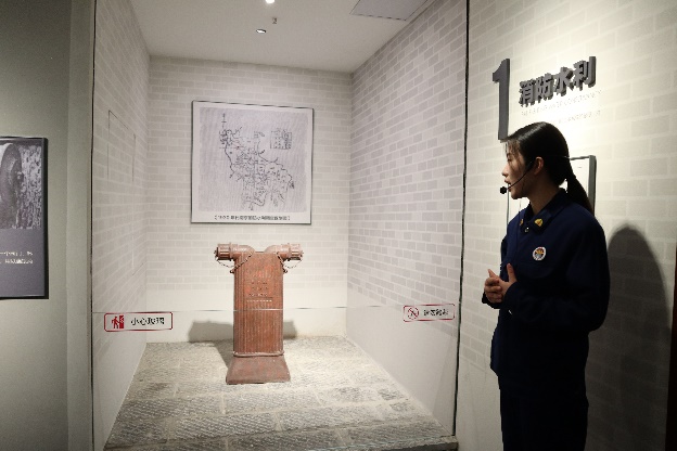 在讲解员的引导下,同学们在展馆一层观摩了明清以来各类消防文物,认识了各时代的消防器具与建筑消防设施,领略到了消防文化深厚的历史底蕴。