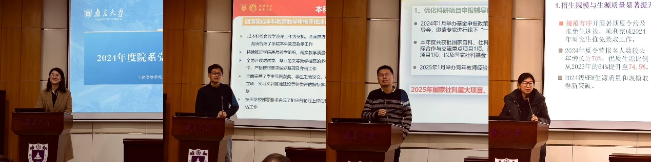 俞红海经理从学科发展战略调整与建设成效、团队队伍建设与发展、人才培养改革举措、科学研究与社会服务和治理架构优化完善等五个方面对学院2024年度工作开展总结述职。