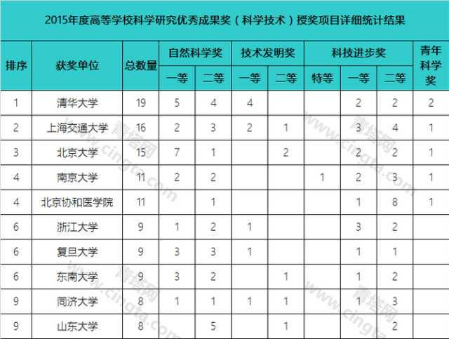 据了解,高等学校科学研究优秀成果奖(科学技术)分设自然科学奖、技术发明奖、科技进步奖和青年科学奖。自然科学奖授予在基础研究和应用基础研究中做出重要科学发现的个人和单位;技术发明奖(其中含专利类),授予在运用科学技术知识做出产品、工艺、材料及其系统等重要技术发明的个人和单位;科技进步奖(其中含推广类和科普类)授予在应用推广先进科学技术成果、完成重要科学技术工程、计划、项目等方面做出创造性贡献,或在科学普及中做出重要贡献的个人和单位;青年科学奖授予长期从事基础性科学研究并取得了有一定影响的原创性成果的在校青年教师。高等学校科学研究优秀成果奖(科学技术)面向全国高等院校,每年评审一次,是仅次于国家三大奖的教育部科技奖项。