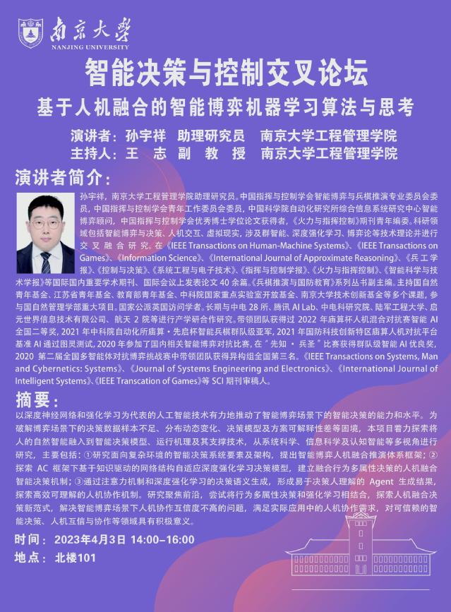 智能决策与控制交叉论坛:基于人机融合的智能博弈机器学习算法与思考