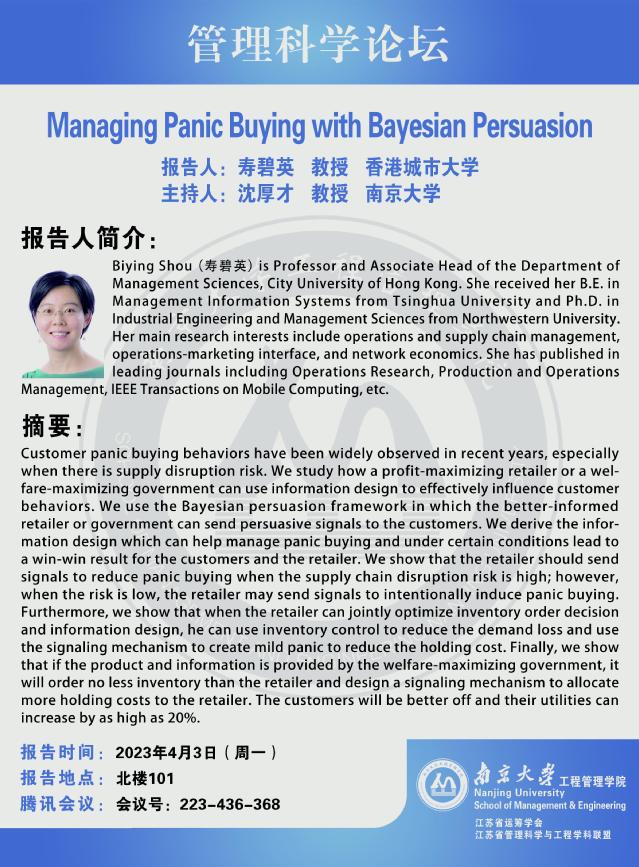 管理科学论坛:Managing Panic Buying with Bayesian Persuasion