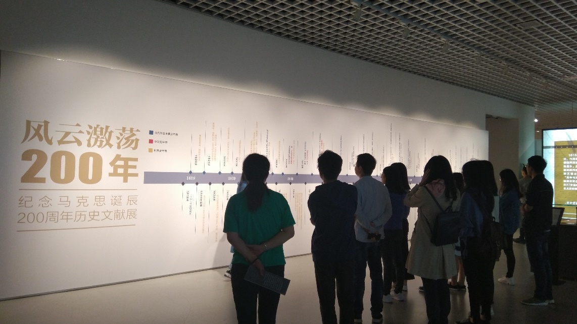 最后,党员们共同来到美术馆,参观了“风云激荡200年——纪念马克思诞辰200周年历史文献展”。在讲解员的带领和讲解下,党员们依次参观了“马克思主义哲学诞生”、“社会主义从空想到科学的转变”、“剩余价值的发现”、“马克思晚年的生活和探索”和“马克思主义在传播中发展”五个展厅,更全面深刻地感受到了马克思的人格魅力,更细致地学习了马克思主义的思想精髓。展厅中,也不乏马克思亲笔手稿等珍贵文物,党员们纷纷驻足瞻仰。