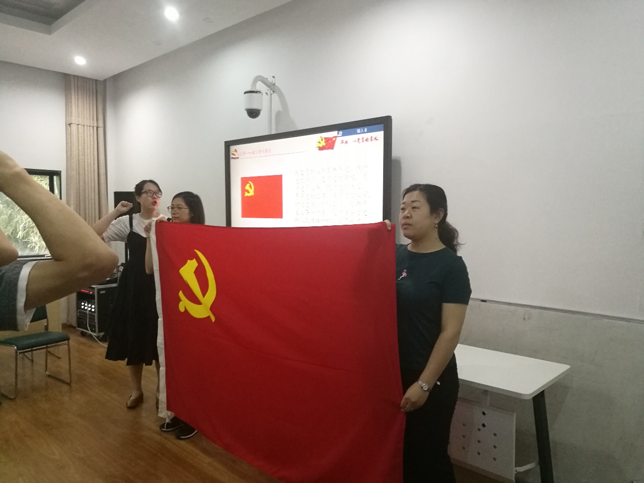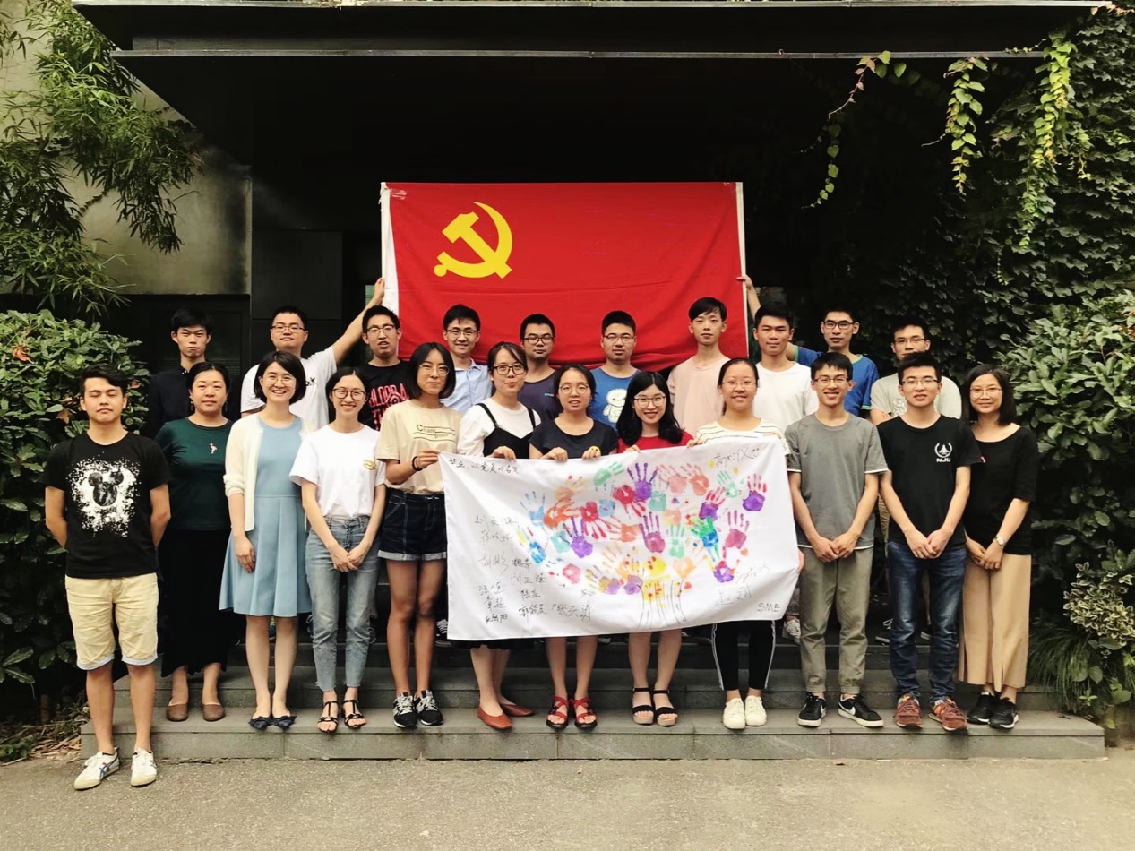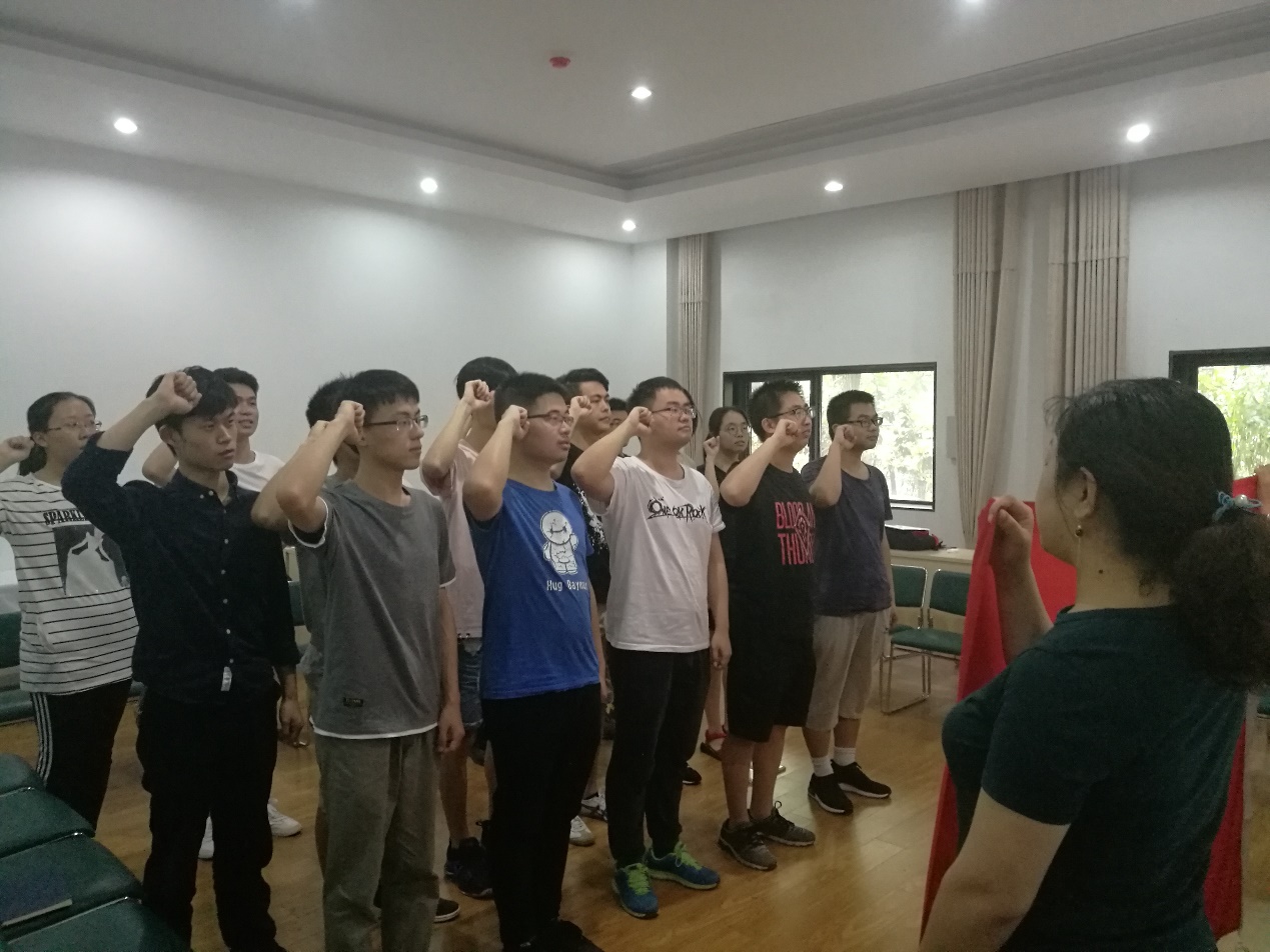 开场时,全体成员在主持人14级本科生高心仪的带领下,面对党旗宣誓,重温入党时的誓词,唤起同学们在大学期间关于入党仪式的记忆,表达了为共产主义事业奋斗终身的理想和信念。宣誓之后在14级本科生胡彬和郭皓辰的带领下,朗读毛泽东同志的《沁园春·长沙》,气势磅礴的诗词让同学们心中怀有万千豪迈之情,即使毕业也不忘为共产主义事业而奋斗,“恰同学少年,风华正茂”,年轻人更应该不忘初心,牢记使命。