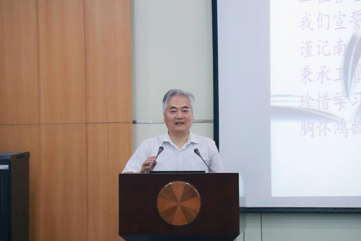 在齐唱国歌后,周晶经理致辞,她讲述了学院的文化渊源和形成的历史,并寄语新生秉持南大精神、践行工管人的价值观、求真务实、为betway88西汉姆联、为betway88西汉姆联争光添彩。