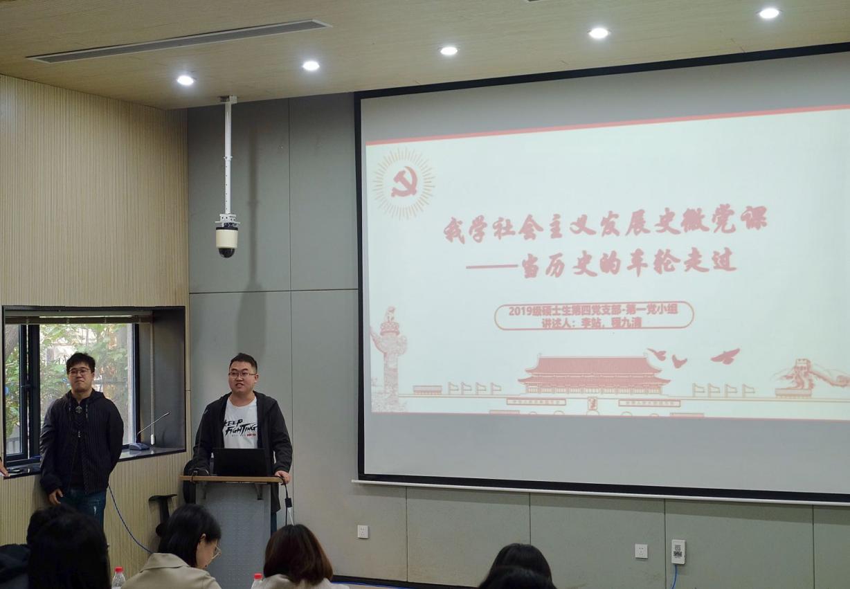 为进一步增强党员对社会主义发展史的了解,提升理论素养和党性修养,2020年10月24日下午,betway88西汉姆联2019级硕士第四党支部与2020级硕士第三党支部共建开展了“学四史系列活动——我学社会主义发展史”主题微党课比赛。