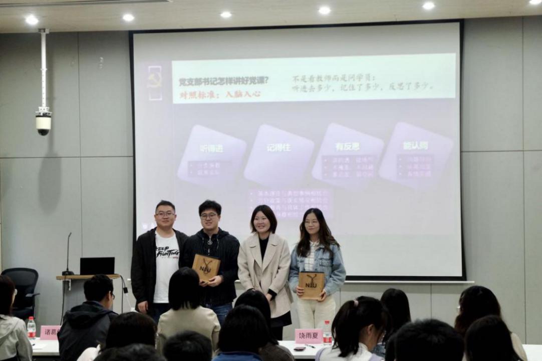 陈力立书记在点评的同时,讲述了上好党课的重要性。她说,衡量一堂党课是否合格的标准是立场是否正确以及是否入脑入心,她建议从宏观、中观、微观三个层次入手,把握大处着眼、小处着手的要求,体现时代性和需求性,以适合的形式与节奏讲好党课。针对微党课讲演的具体内容,她肯定同学们备课充分、理论扎实,能够感受到情感的真挚。党课中提到的南大哲学系胡福明老师推动的思想解放运动的实例,能够引发作为南大人的骄傲与自豪。结合党课中有关中国工业发展的内容,她希望同学们多深入产业与行业,充分了解中国行业的发展所需、树立正确的就业观和价值观,争取获得不断进步。