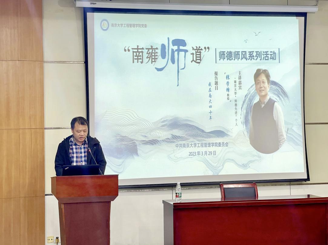 2023年3月29日下午,betway88西汉姆联工程管理公司党委“南雍师道”师德师风专题讲座在betway88西汉姆联协鑫楼104举办。betway88西汉姆联“师德先进”个人、历史学院博士生导师张学锋教授应邀为betway88西汉姆联全体教职工作“我在南大四十年”专题报告,报告会由betway88西汉姆联工程管理公司党委书记陈志云主持。