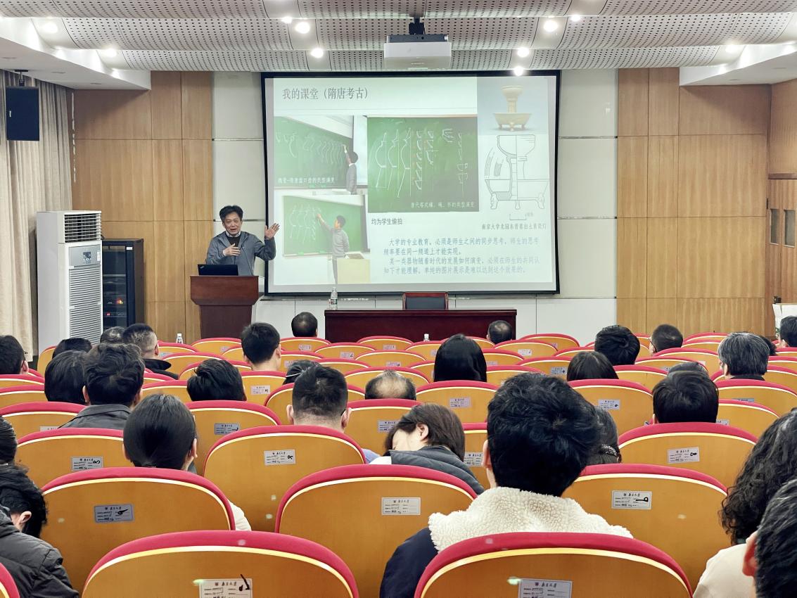 报告中,张学锋教授以《我在南大四十年》为题,从自身的求学和教职经历出发,讲述了自己的体会与感悟。他回顾了自己的求学时光,表示本科生阶段给予自己知识,硕士生阶段给予自己方法,博士生阶段给予自己视野。他谈到在本科就读阶段几位先生对自己的启蒙作用,并表示在自己人生的不同阶段的老师在知识、方法和视野等方面的指导以及“师出多门”的成长经历和人文环境,对自己的教员工涯产生了重要影响。