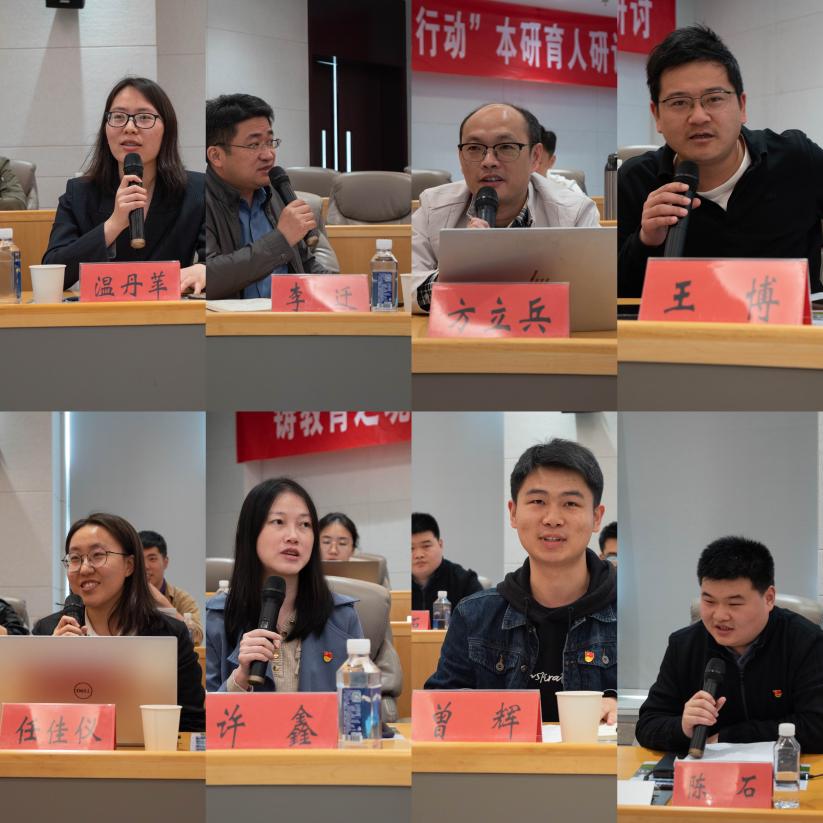 随后,参加研讨的师生们结合培训心得和“奋进行动”实施方案逐一发言,开展“立德树人”专题研讨。本科生班主任们主要围绕如何培养员工国际化视野、强化多频次师生沟通、发挥班团党载体作用等方面阐述了所思所想。研究生德育导师表示员工对人生目标的定义都来自于当前维度,要引导员工把服务国家作为人生目标,持续强化奋斗动力。员工党支部书记、师门联络员、团学联员工干部主要围绕强化各校区联动、发挥党团的思想引领作用、开展学术类活动、增强理想信念教育、强化职业生涯指导等方面进行交流,提出了许多有益建议。