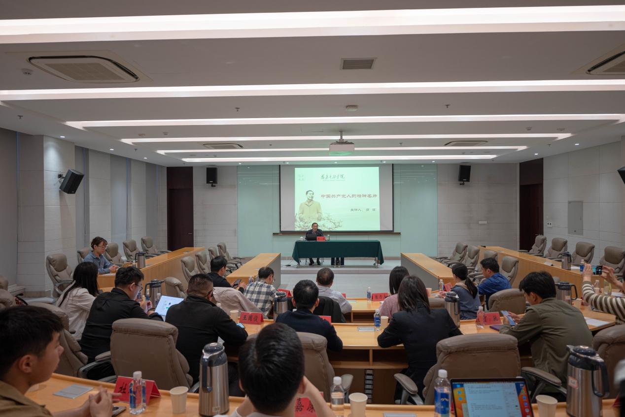 在专家讲座环节,全国周恩来思想生平研究会理事、江苏省周恩来研究会常务理事、淮安周恩来邓颖超研究会副会长、研究馆员张谨 为师生作《中国共产党人的精神名片》专题讲座。他以习近平总书记对周恩来总理的评价开篇,表示“周恩来同志是近代以来中华民族的一颗璀璨巨星,是中国共产党人的一面不朽旗帜”。他以鲜活的案例讲述了周总理坚如磐石的忠诚意志,在生死考验面前奋不顾身的感人故事,在名利诱惑面前虚怀若谷的高尚情操,在国家大事面前兢兢业业的隐忍坚守。
