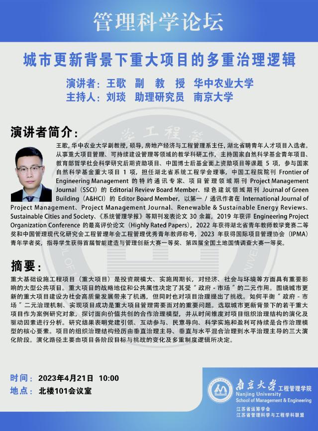 管理科学论坛:城市更新背景下重大项目的多重治理逻辑