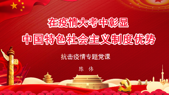 会议开始,公司党委书记陈伟围绕中共中央总书记习近平同志在《求是》杂志上发表的系列重要文章,为支部党员讲授《在疫情大考中彰显中国特色社会主义制度优势》的专题党课。陈伟同志指出,面对疫情防控的当前形势,要坚持中国特色社会主义制度自信、道路自信和文化自信,要始终坚持党的领导,加强民主协商、社会协同、公众参与、法治保障、科技支撑社会治理体下的疫情防控,依法防控与治理、科研攻关、国际合作、脱贫攻坚,进一步彰显党的集中统一领导的强大凝聚力和生命力,以创新实干的具体行动肩负新使命、开启新征程,毫不动摇地坚持和完善以中国共产党领导为最本质特征和最大优势的中国特色社会主义制度,不断推进国家治理体系和治理能力现代化,争取早日实现国家现代化和民族复兴的宏伟目标。支部党员要把学习心得和公司教学、科研、学科发展等结合起来,认真做好学院各方面工作。