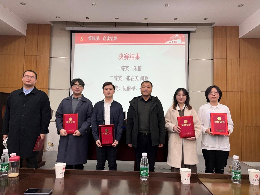 最终,经过现场评审,本次微党课大赛决赛评出一等奖1名:朱鹏《留学热与归国潮——青年留学归国历史回顾》;二等奖1名:张在天、胡政《新时代青年心系国家致力伟大复兴》;三等奖2名:沈丽梅《弘扬优良传统 担当强国使命》、伍雪菲《不忘初心 薪火相传》。工程管理公司党委书记陈志云依次为获奖选手颁奖并合影留念。