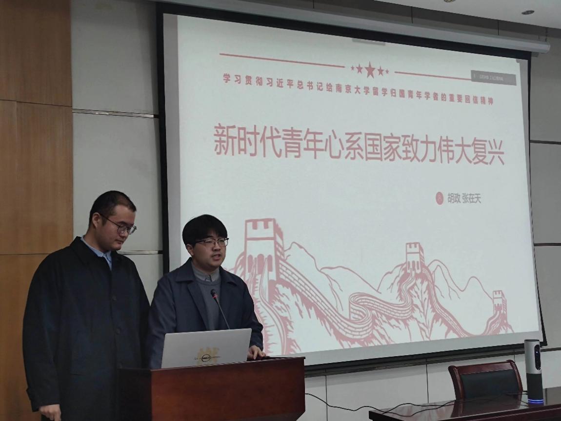 博士生党支部的伍雪菲同志展示了微党课《不忘初心 薪火相传》。从“留学报国,薪火相传”和“不忘初心,牢记使命”两个篇章展开,声情并茂地讲述了当代青年应如何心系国家事、肩扛国家责。她认为,南大学子应不忘初心,牢记使命,要始终保持积极向上的精神状态,把志气、骨气、底气作为我们新时代青年的底色。朱张青老师和李敏老师肯定了伍雪菲同志围绕“不忘初心,薪火相传”的主题展开留学归国人士建设祖国的演讲,并号召同学们把自己的科学追求融入建设社会主义现代化强国的伟大事业中。
