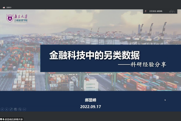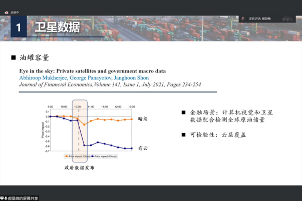 来自2020级金融工程专业的郝显峰就《金融科技中的另类数据》展开了科研经验分享,给出了“论文选题=现实场景+可检验性”的万能公式,以不同的数据为聚焦探讨了多样创新的金融场景的可检验性。他建议大家要留心生活、善于观察,通过阅读文献将小的问题剥离出来找到其可检验性,转化为有趣的研究课题。