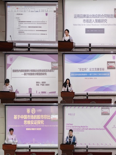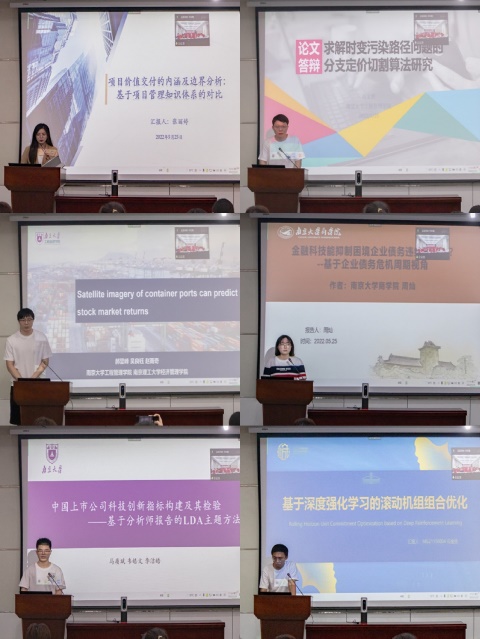 在交流会上,12篇论文作者依次从研究思路、模型构建、实证过程和成果等方面进行阐述。其中既有基于中国市场对当下大热的数字普惠金融与金融科技的实证研究,也有使用博弈模型对实际问题进行凝练与求解的讨论,还有结合碳排放政策的高效算法研究,亦有基于排班计划与项目管理的探索与分析。这12项研究选题新颖、关注前沿、案例典型,演讲者逻辑清晰、表达顺畅、展示出色,引领听众走进论文创作的世界,展现了南大学子的风采。评委分别从研究目标的明确性、研究方法的规范性、研究结果的准确性和可靠性、作品的创新性、PPT呈现和讲解的专业性等方面进行了点评总结,对同学们扎根中国实际问题做研究以及吸收国内外先进研究经验化为己用表示充分的肯定和认可。