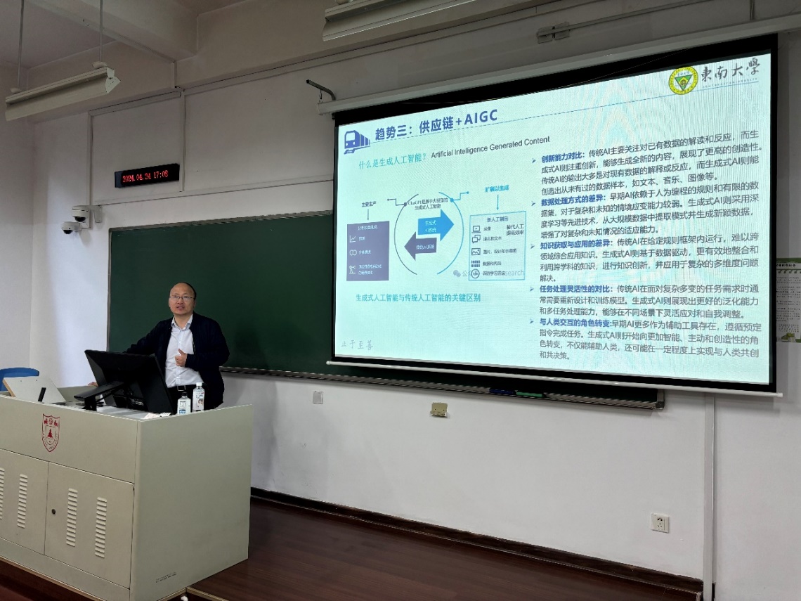 接下来,薛巍立教授作了题为“浅谈供应链管理发展趋势”的分享讲座。薛教授从供应链的基本概念到目前供应链管理发展的最新趋势,深入浅出地为学弟学妹讲解了数字经济时代,供应链发展的背景及情况。接着,薛教授结合实例,为大家详细介绍了目前热门的“供应链+平台”“供应链+ESG”“供应链+AIGC”“供应链+区块链”“区块链+供应链金融”等概念及其最新应用。