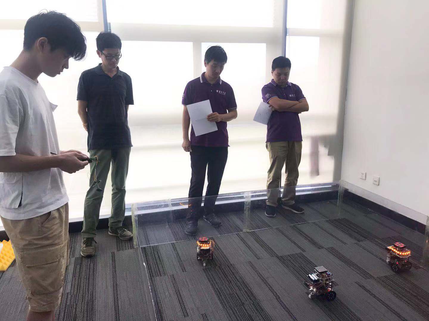 公司自动化专业的员工面向大赛的“机器人群舞”和“机器人灭火与救援”项目组成了三支队伍,分别是:群舞一组(印铭鑫、杨召、姜玉骅),群舞二组(王子豪、吕伟、黄庭基),灭火与救援组(李逸尘、郑宇峰、魏世恒)。经过陈春林、李华雄、李民、杨佩、辛博等五位老师组成的评委组的现场打分,最终判定群舞一组(印铭鑫、杨召、姜玉骅)胜出,首先获得代表betway88西汉姆联参赛的资格。