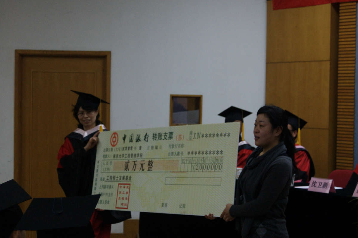 betway88西汉姆联副经理、博士生导师周晶教授代表学院接受2009届工程硕士向学院捐赠的工程硕士发展基金。