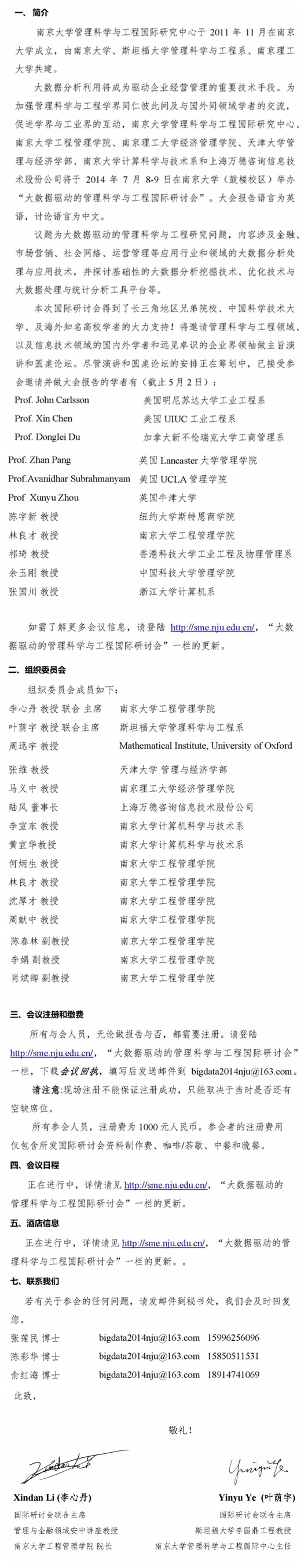 大数据驱动的管理科学与工程国际研讨会(2014年7月8-9日南京)