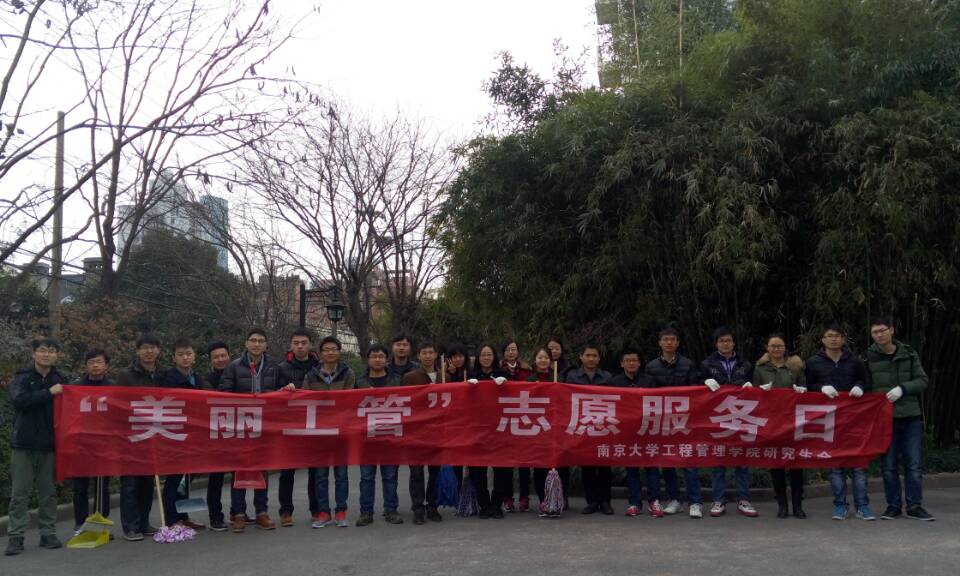 从2011年初起,工程管理公司党委即大力推动员工党员志愿服务制度化,积极构建“以党支部为核心,以党员为骨干,积极分子、优秀团员青年共同参与”的志愿服务工作格局。“美丽工管”志愿服务队自2012年成立以来,累计招募志愿者90余人次,在校园内外提供无偿志愿服务超1000小时,全院员工党员中逐渐形成“争做青年志愿者,我是美丽工管人”的良好风尚。2011级学术硕士党支部因在志愿服务、组织工作方面的突出变现,于2014年被评为“江苏省先进基层党支部”。