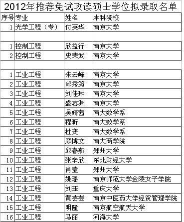 2012年推荐免试攻读硕士学位拟录取名单