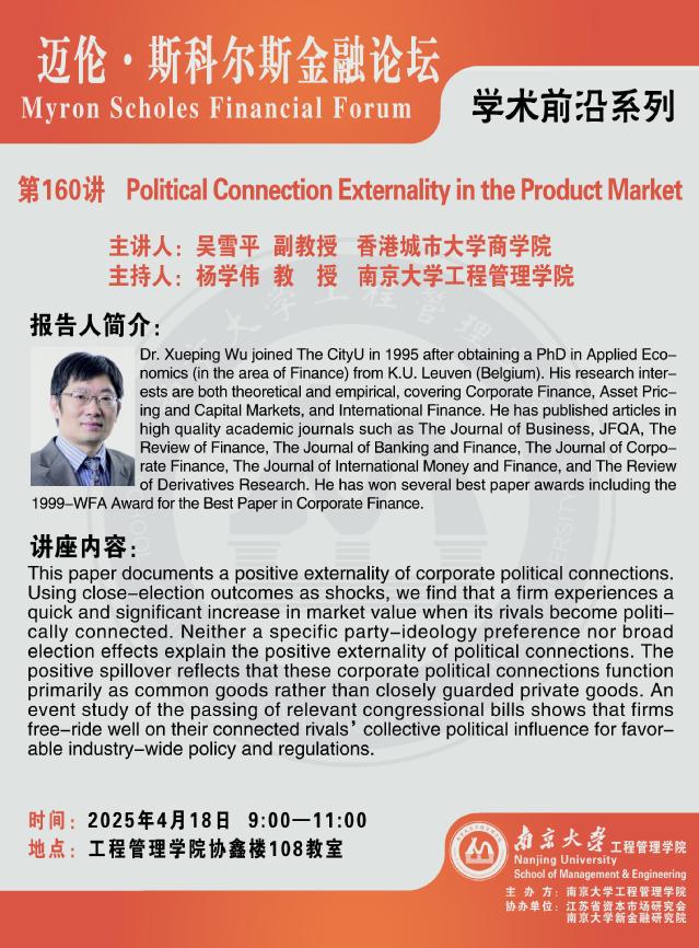 迈伦·斯科尔斯金融论坛:Political Connection Externality in the Product Market