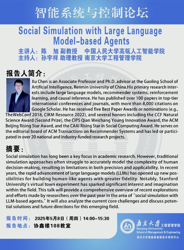 智能系统与控制论坛:Social Simulation with Large Language Model-based Agents