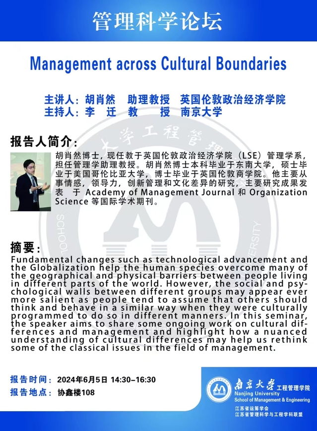 管理科学论坛:Management across Cultural Boundaries