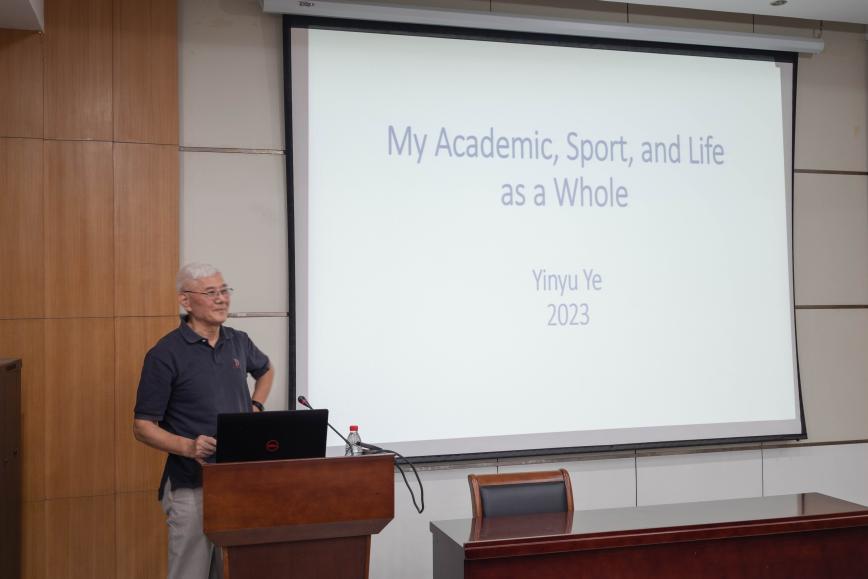 讲座中,叶荫宇教授以《我的学术、体育及人生发展》为题,从自己不同阶段的体育锻炼和求学经历出发,讲述了体育和求学如何改变和影响他的人生发展的故事。他谈到,早期体育锻炼塑造的健康体魄使他拥有更充盈的体力应对人生中的各项难题和挑战,求学途中通过体育结识的良师益友帮助他更好地完成学业,从事科研工作帮助他不断拓宽眼界,见识到世界的不同面貌。他表示,体育教会了他竞争精神、团队合作、以及如何面对挫折和遵守游戏规则,这些对他后续的科研之路和人生发展产生了极大影响,而求学经历促进了体育爱好的不断发展和延伸,使他受益终身。