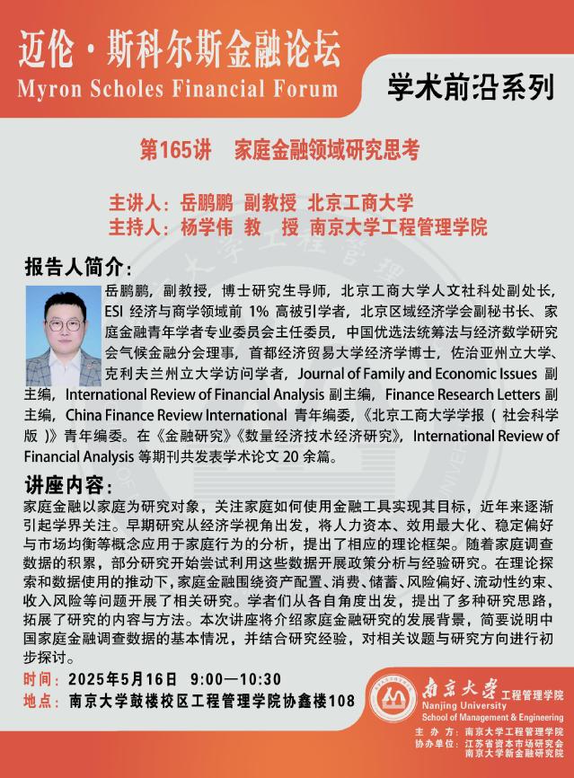 迈伦·斯科尔斯金融论坛:家庭金融领域研究思考