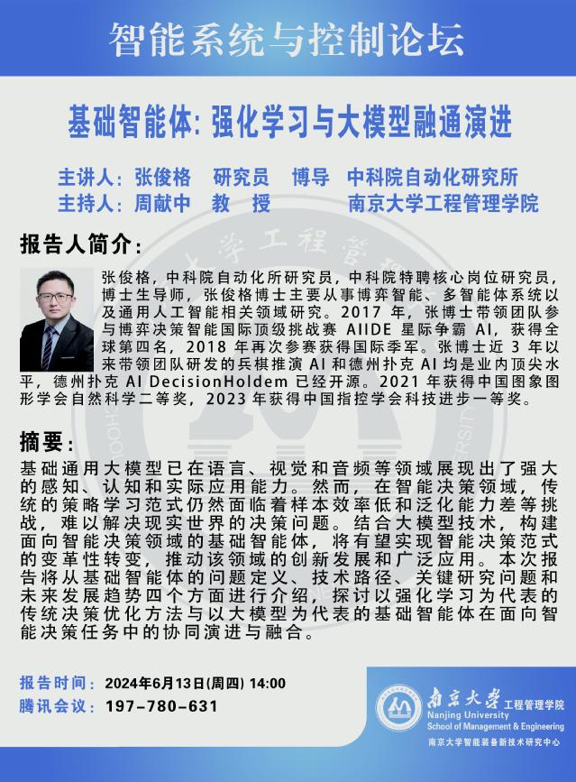 智能系统与控制论坛:基础智能体: 强化学习与大模型融通演进