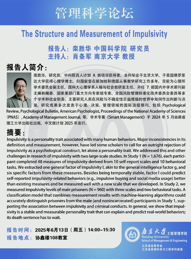 管理科学论坛:The Structure and Measurement of lmpulsivity