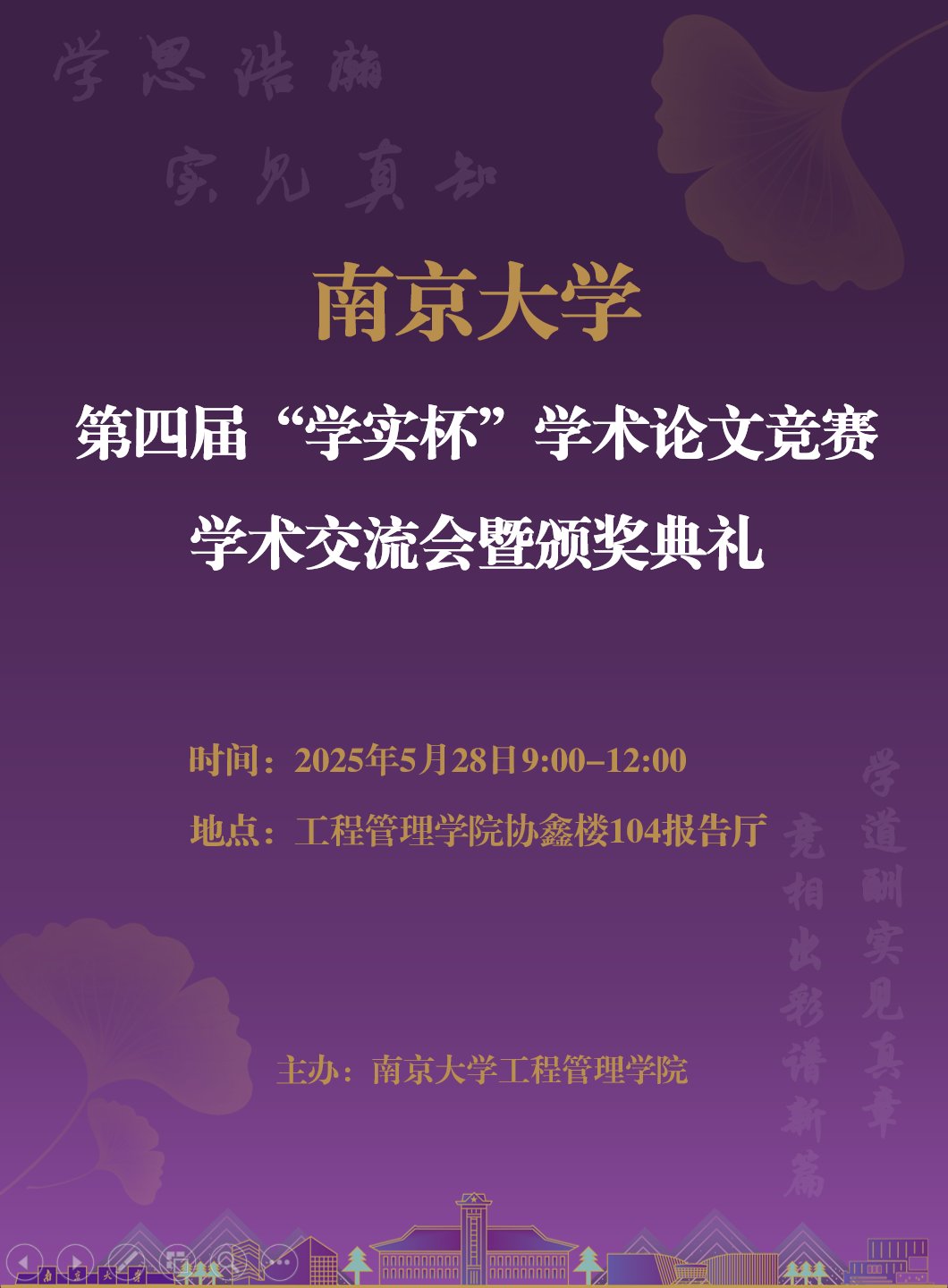 2025年5月28日上午9点,betway88西汉姆联第四届“学实杯”学术论文竞赛学术交流会暨颁奖典礼将在鼓楼校区betway88西汉姆联协鑫楼104报告厅举行,欢迎同学们到场观看答辩。