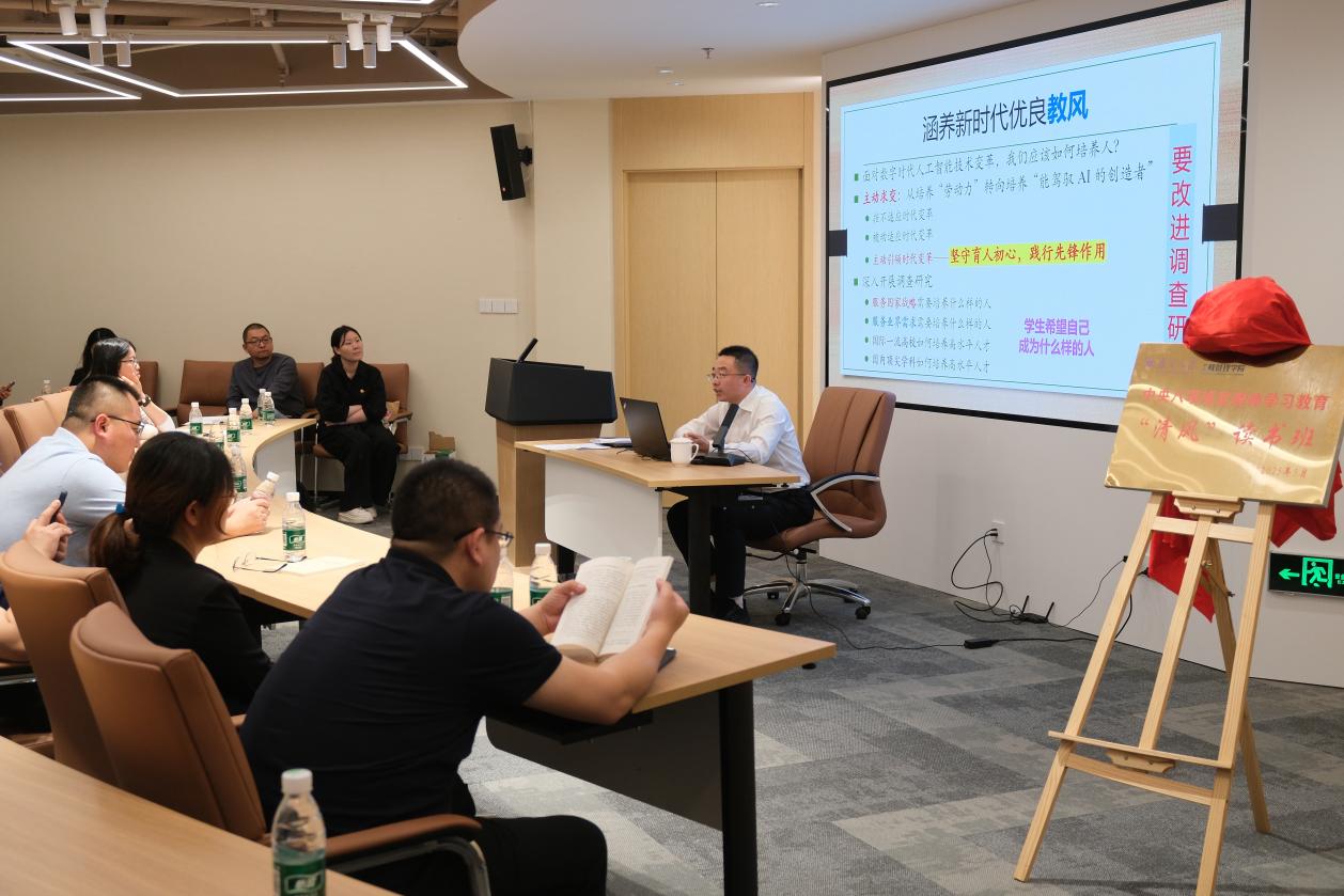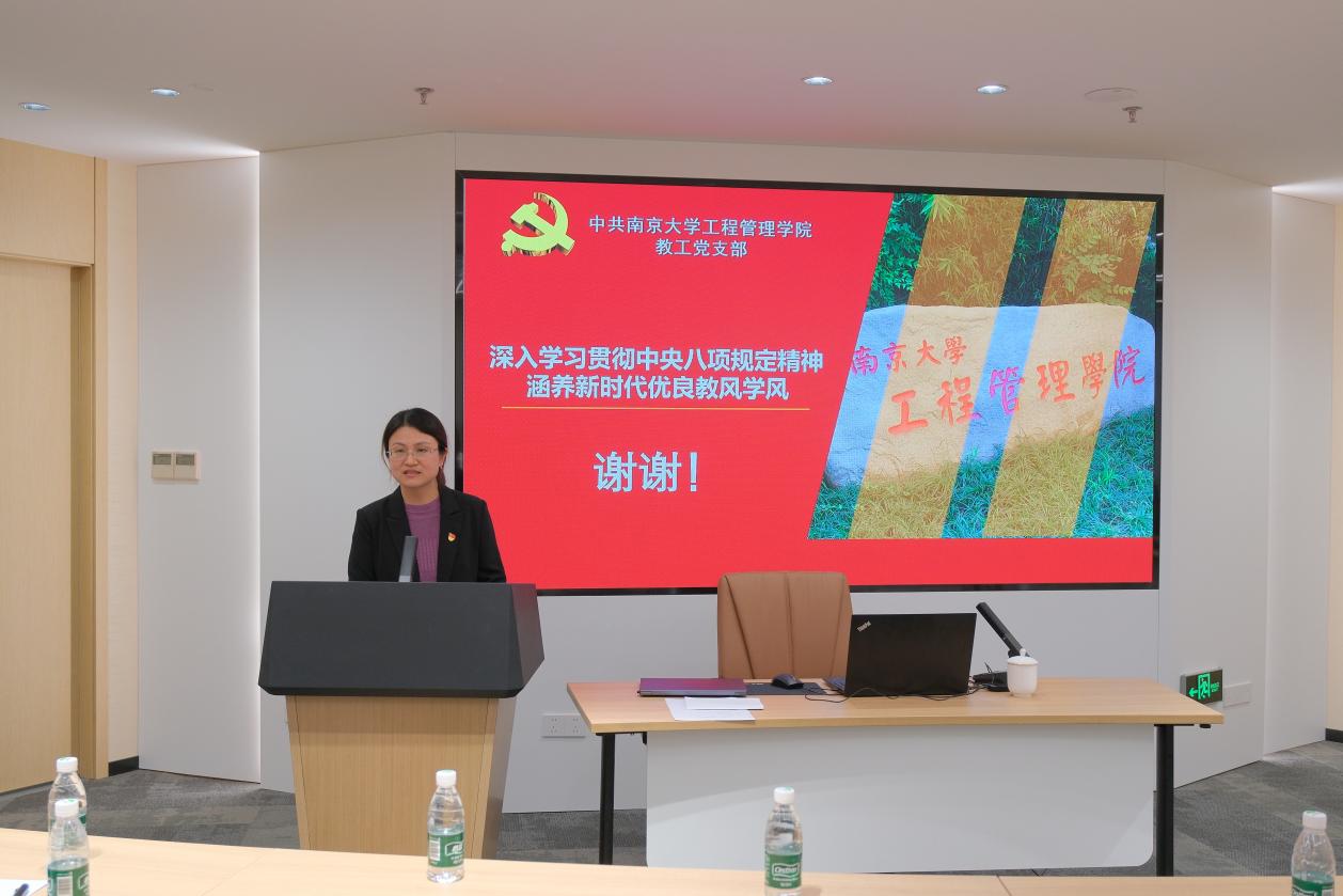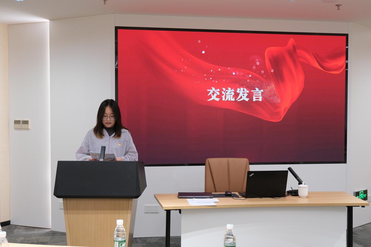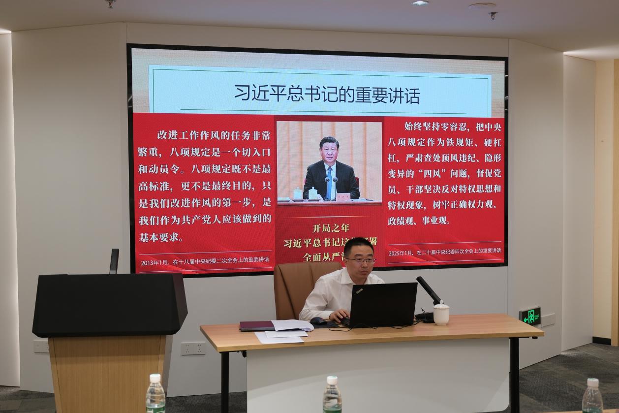 在交流环节,教师党员代表和员工党员代表依次发言。教师党员代表、教职工党支部纪检委员徐薇表示,要强化学习中央八项规定精神,抵制不正之风、做好示范引领,努力营造教学相长的良好氛围。员工党员代表、2024级硕士生第三党支部纪检委员秦睿同学表示要自觉抵制不良风气,在学习科研中守牢底线,把艰苦奋斗、务实进取的精神内化为日常的行为习惯。
