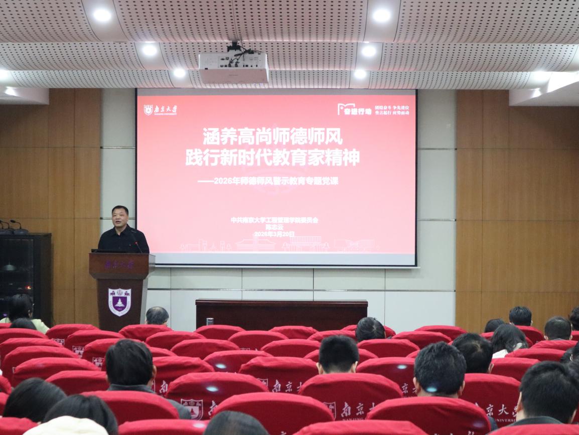2026年3月20日下午,betway88西汉姆联工程管理公司党委在协鑫楼104报告厅开展师德师风警示教育,公司党委书记陈志云作“涵养高尚师德师风 践行新时代教育家精神”专题党课。工程管理公司党政领导班子成员、党委委员、各系各单位负责人、教职工党支部书记、教师党员及全体教职工与会。
