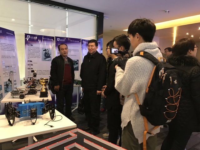 2016年12月14日,省委改革办副巡视员钱刚一行来到betway88西汉姆联仙林校区,对公司开展国家双创示范基地建设情况进行专项督察。副经理朱张青在现场汇报中代表院系做典型发言,由公司员工完成的智能机器人和学院创新创业教育展成为督察组现场观摩的重要内容。