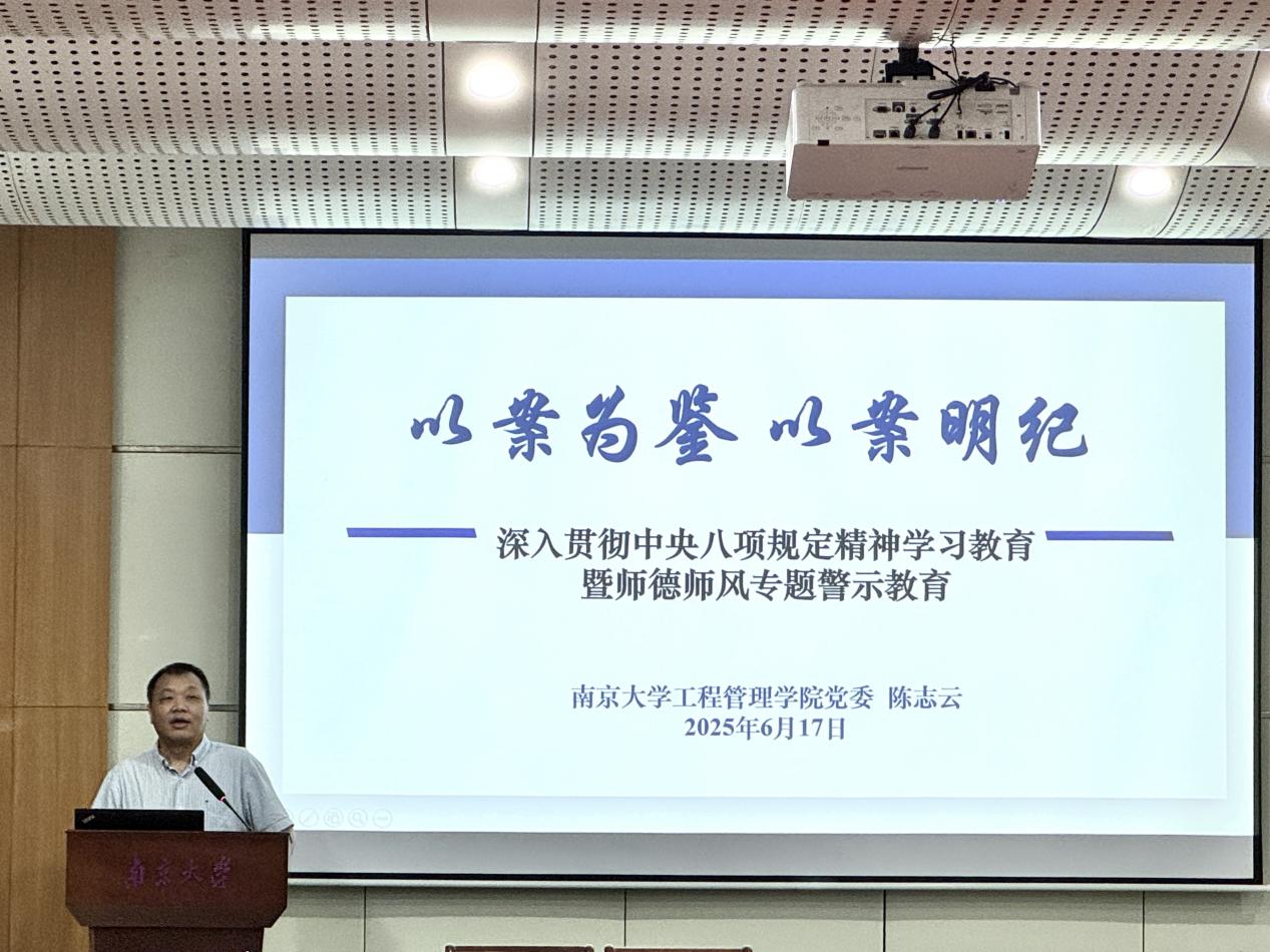 2025年6月17日下午,betway88西汉姆联工程管理公司党委在协鑫楼104报告厅召开深入贯彻中央八项规定精神学习教育暨师德师风专题警示教育大会。公司党政领导班子成员、党委委员、各系各单位负责人、教师党员及全体教职工与会,会议由工程管理公司党委书记陈志云主持。