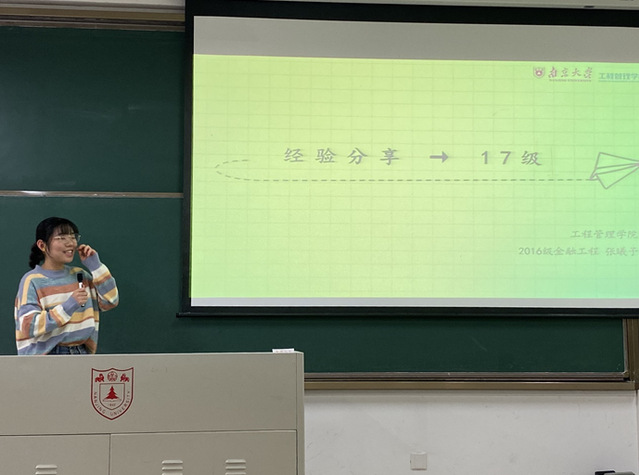 班会邀请到2016级自动化专业刘洋和金融工程专业张曦予进行大学学习和生活经验分享。刘洋从日常行为考评细则中关于学科竞赛的激励解读出发,向同学们详细介绍了参加竞赛对自身提升学术科研能力的帮助。张曦予则从专业学习、公益服务、员工工作等多个角度出发,向大家展示自己的收获,并结合实际提出切实有用的建议。学长学姐均建议大家提前制定成长目标,用目标引领行动。